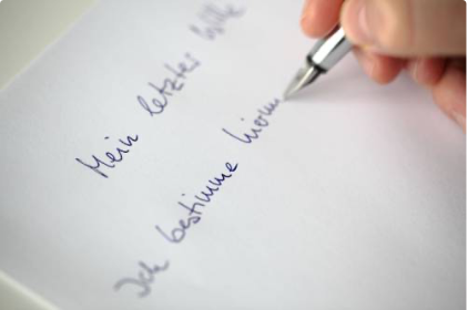 Privatschriftliches Einzeltestament: Dieses müssen Sie eigenhändig verfassen und unterschreiben. Ort und Datum sind gem. § 2247 BGB nur eine Sollvorschrift, jedoch für die Eindeutigkeit eines Testamentes empfehlenswert.